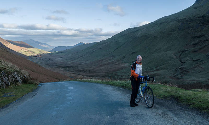 On Christmas Eve Graham Nevett and I rode to Newlands valley and over the pass (333 m, 1093 ft) to Buttermere. Then down Lorton Vale, over Whinlatter Pass (318 m, 1043 ft) and back through Portiscale to Keswick. We stayed at Keswick Hostel.
